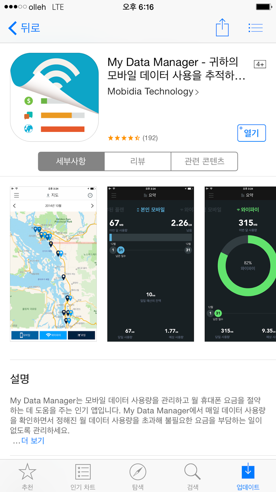 이로 인해서 데이터 폭탄을 맞는 경우가 상당히 많이 있습니다. 요즘은 데이터의 용량이 커지다보니 자연스레 타블렛이나 노트북으로도 데이터를 테더링해서 사용하는 경우가 많은데 그래서 더욱 주의를 해야 합니다.